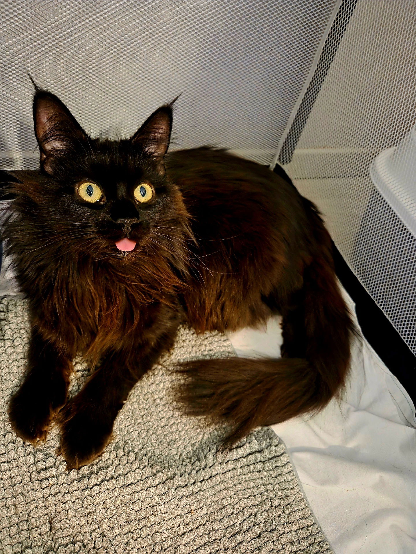 Yoko Maine Coon – Le Maître Zen de la Maison Yoko a tout compris à la vie : pourquoi courir quand on peut s’étirer ? Pourquoi miauler quand on peut dormir ? Ce grand mâle majestueux n’a que deux passions sacrées : le sommeil profond et les bons repas. Son agenda ? Une sieste après le petit-déj, un petit snack avant la sieste de l’après-midi, et une longue nuit réparatrice bien méritée. Le reste du temps, il observe le monde avec sagesse, depuis son coussin préféré, les yeux mi-clos, l’air de dire : « Vous vous agitez beaucoup trop, les humains… » Yoko, c’est le boss tranquille, le roi du canapé, le gourou du farniente. Un chat avec une âme de moine… à condition qu’on respecte son rituel sacré : dodo – croquettes – dodo.